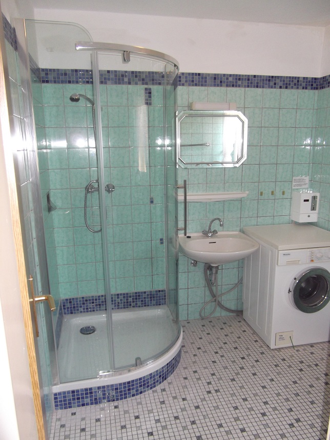 Dusche mit seperatem WC und vorhandener Waschmaschine: