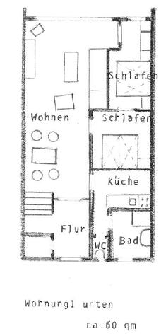 Ca. 60 qm stehen Ihnen in folgender Aufteilung zur Verfügung: